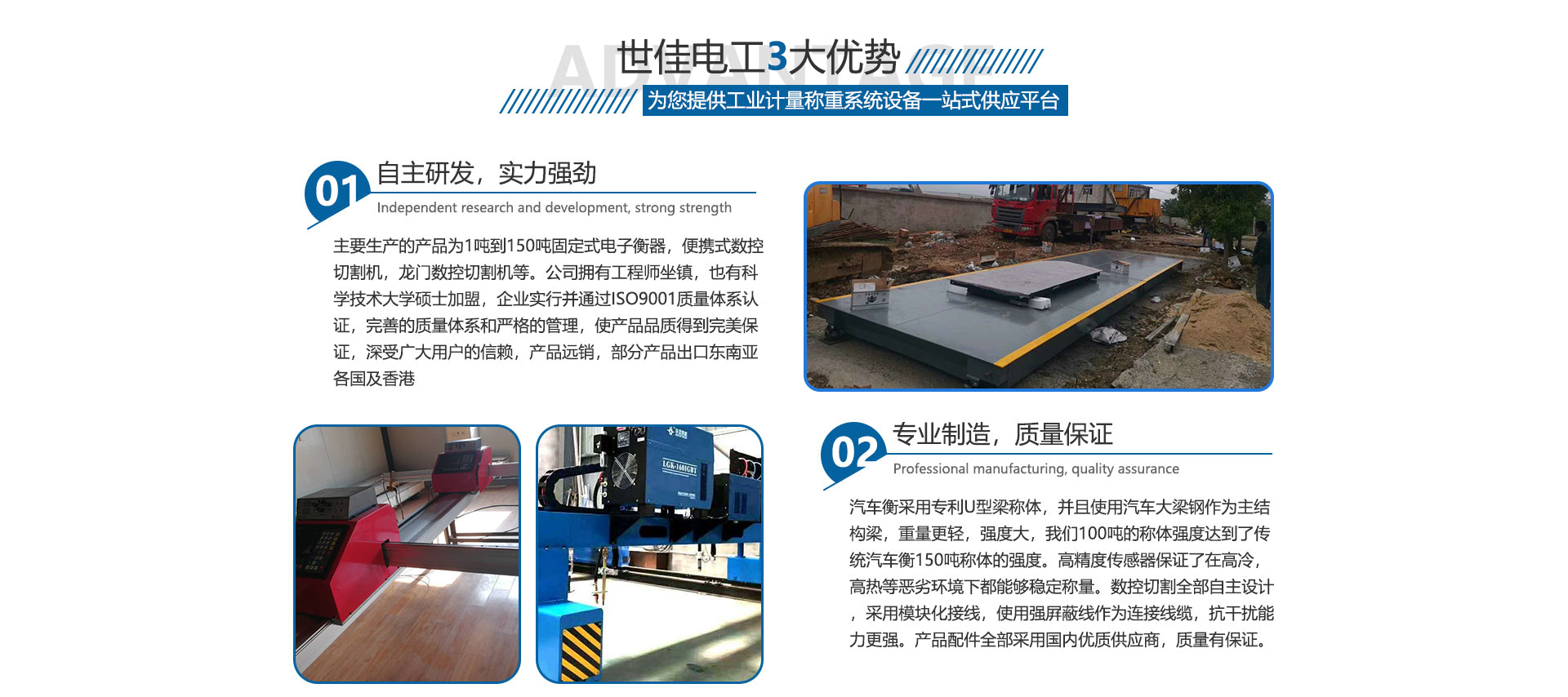 合肥世佳電工設備有限公司是生產、銷售工業(yè)自動化設備。主要生產的產品為1噸到150噸固定式電子衡器,便攜式數控切割機,龍門數控切割機等。公司擁有工程師坐鎮(zhèn),也有中國科學技術大學碩士加盟,完善的質量體系和嚴格的管理,使產品品質得到保證,深受廣大用戶的信賴,產品各地可售,部分產品出口東南亞各國及香港,數控切割設備也在安徽處于前列。我們并不滿足現在所取得的成就,公司繼續(xù)加大科研投入,正在和中科大物理研究所科研人員共同研究開發(fā)下一代衡器控制儀表,希望以技術作為突破口,將公司做大做強,為中華崛起盡自己一份綿薄之力。歡迎廣大客戶來廠參觀訂貨考察。